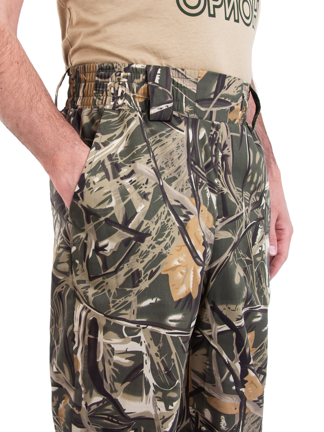 Пояс брюк полностью эластичный, дополнен шлевками для ремня и внутренней утяжкой на шнур. Два кармана у пояса без застежки.Ткань устойчива к выгоранию, не теряет форму и имеет более продолжительный срок службы по сравнению с обычным х/б. Костюм «Пионер» активно применяется силовыми структурами, туристами, дачниками, любителями активного отдыха.